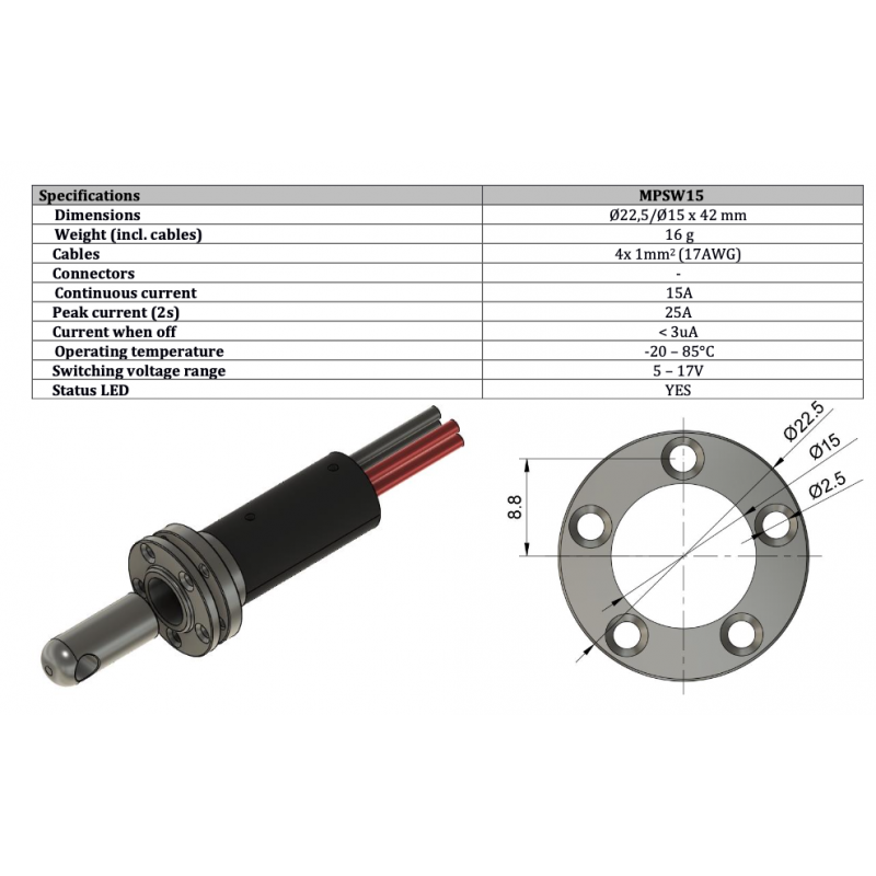 | Dimensions [mm] | Ø22,5 / Ø15 x 42 mm |