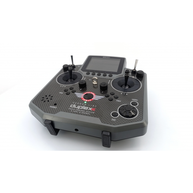 Un écran LCD TFT couleur placé en haut de l'émetteur permet d'obtenir une visibilité optimale par forte luminosité ambiante. Grâce à sa haute résolution d'affichage et à l'utilisation d'une nouvelle interface graphique, la Jeti DS12 est une radiocommande simple à mettre en œuvre,intuitive, et ouvre de nouveaux horizons avec l'emploi de la télémétrie EX Duplex.